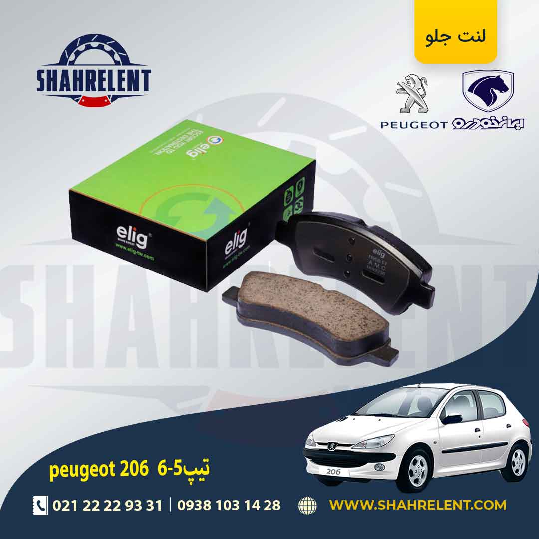 لنت ترمز جلو پژو 206 تیپ 5 برند الیگ (ELIG)