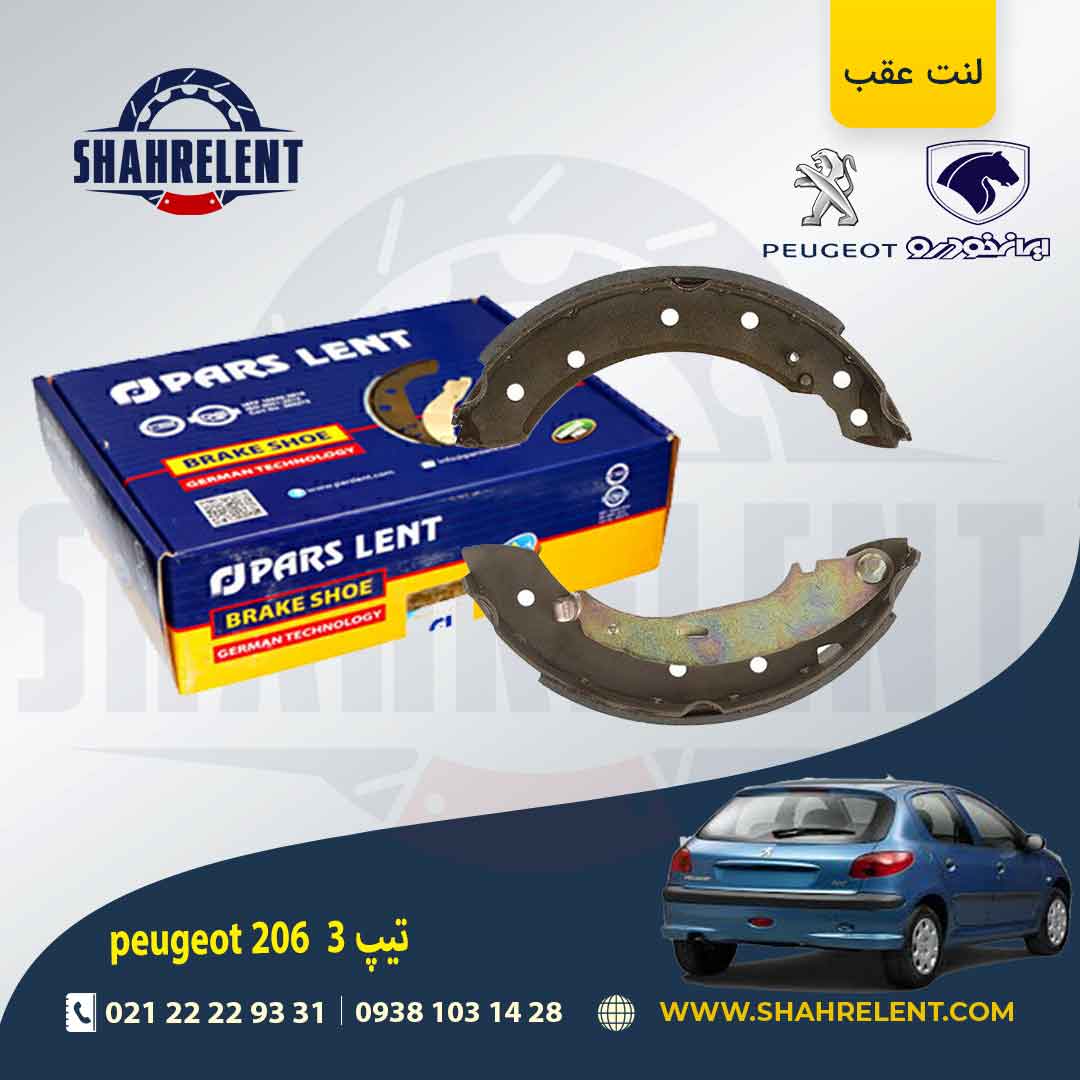 لنت ترمز عقب کفشکی پژو 206 (تیپ 3) برند پارس (PARS)