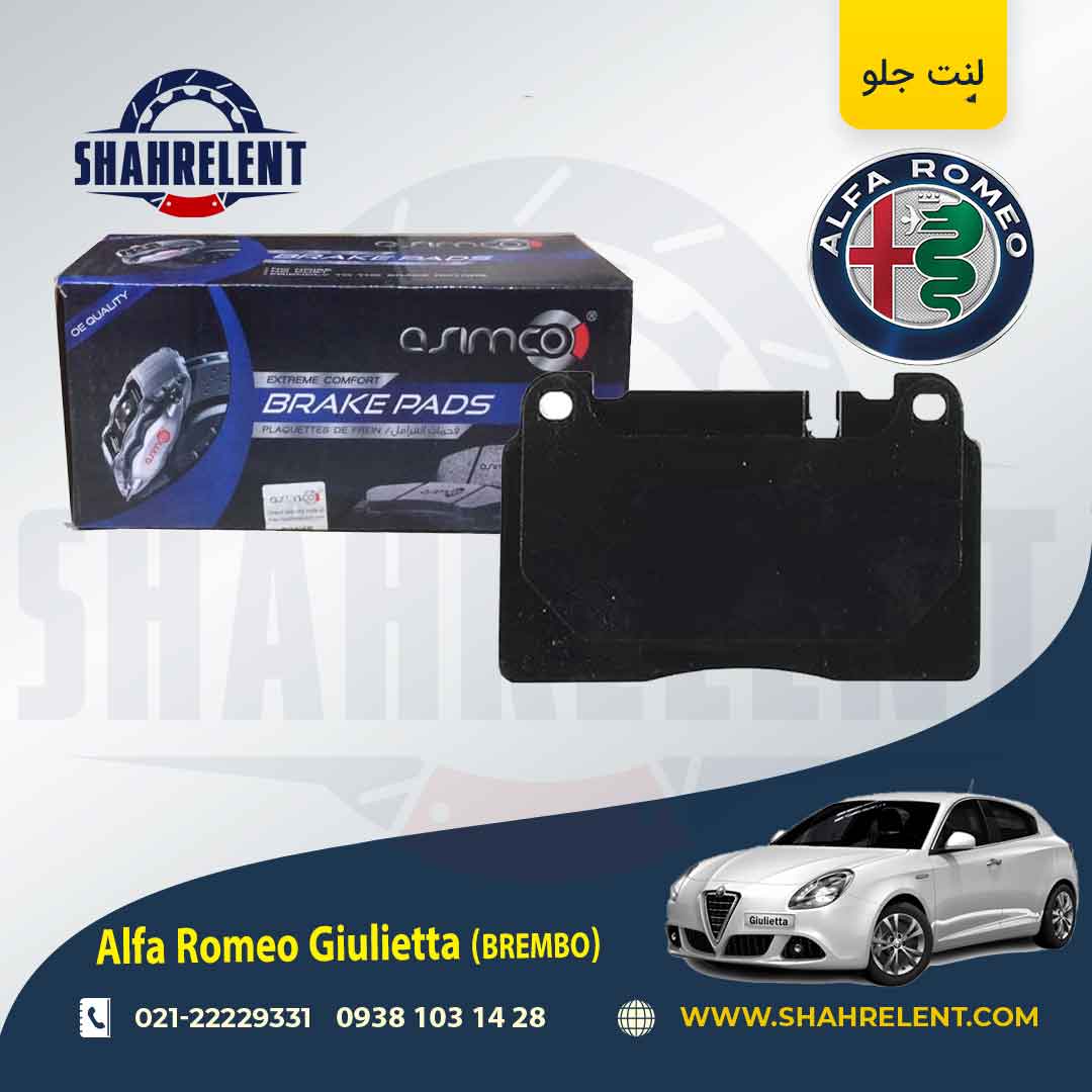 لنت ترمز جلو خودرو آلفا رومئو جولیتا در دو نوع ساده و برمبو طراحی و تولید شده است.